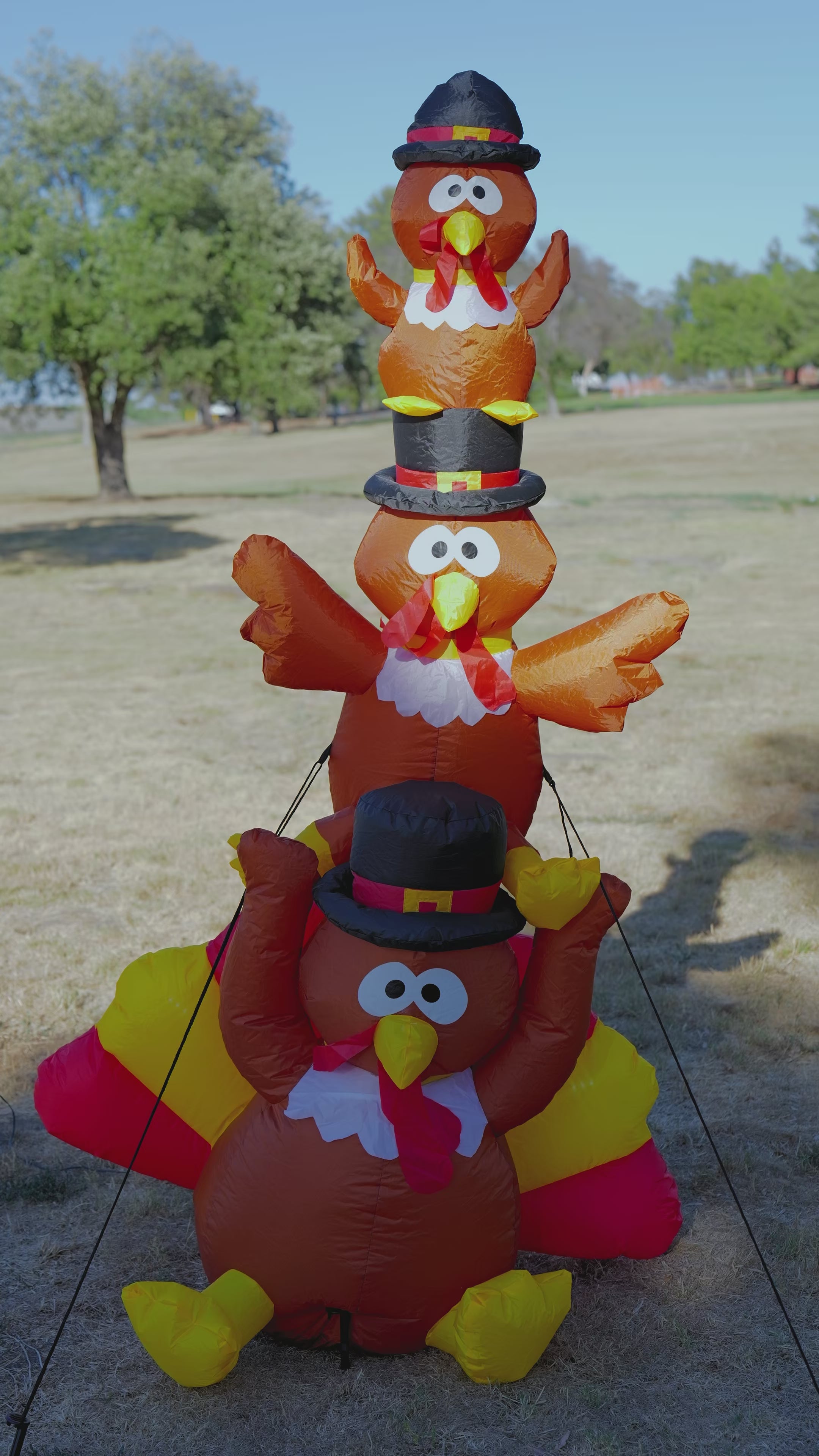- POWERFUL FAN INFLATE: This Turkey Day inflatable outdoor decoration inflates in about a minute with its powerful fan. Lightweight and easy to set up, both adults and kids can handle it without extra tools. Create a festive outdoor Thanksgiving decorations yard display effortlessly with this fun turkey yard decorations outdoor inflatable.