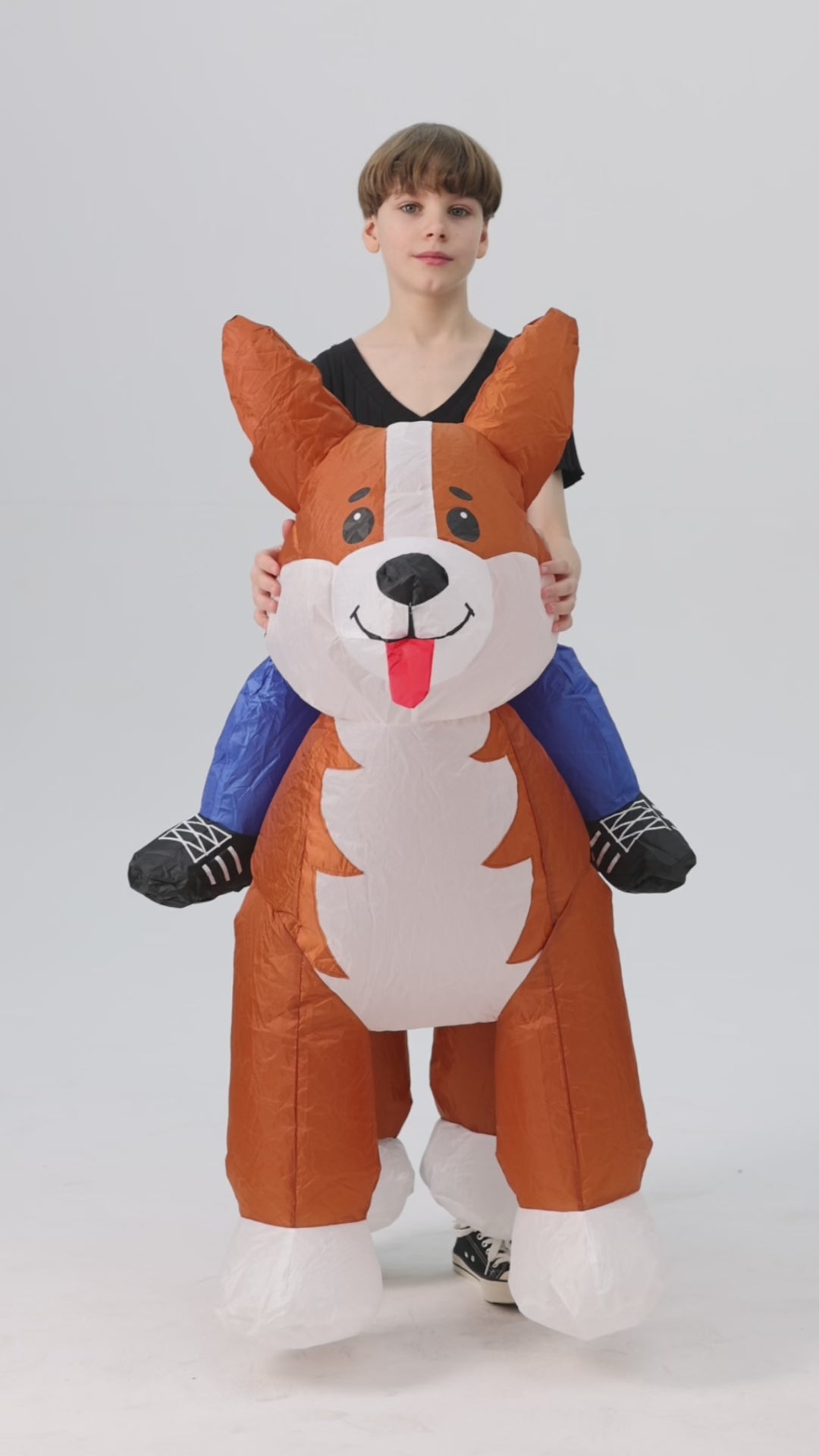 Kid Inflatable Costume, Blow Up Ride On Corgi Dog Costume for Halloween Inflatables Cosplay Party