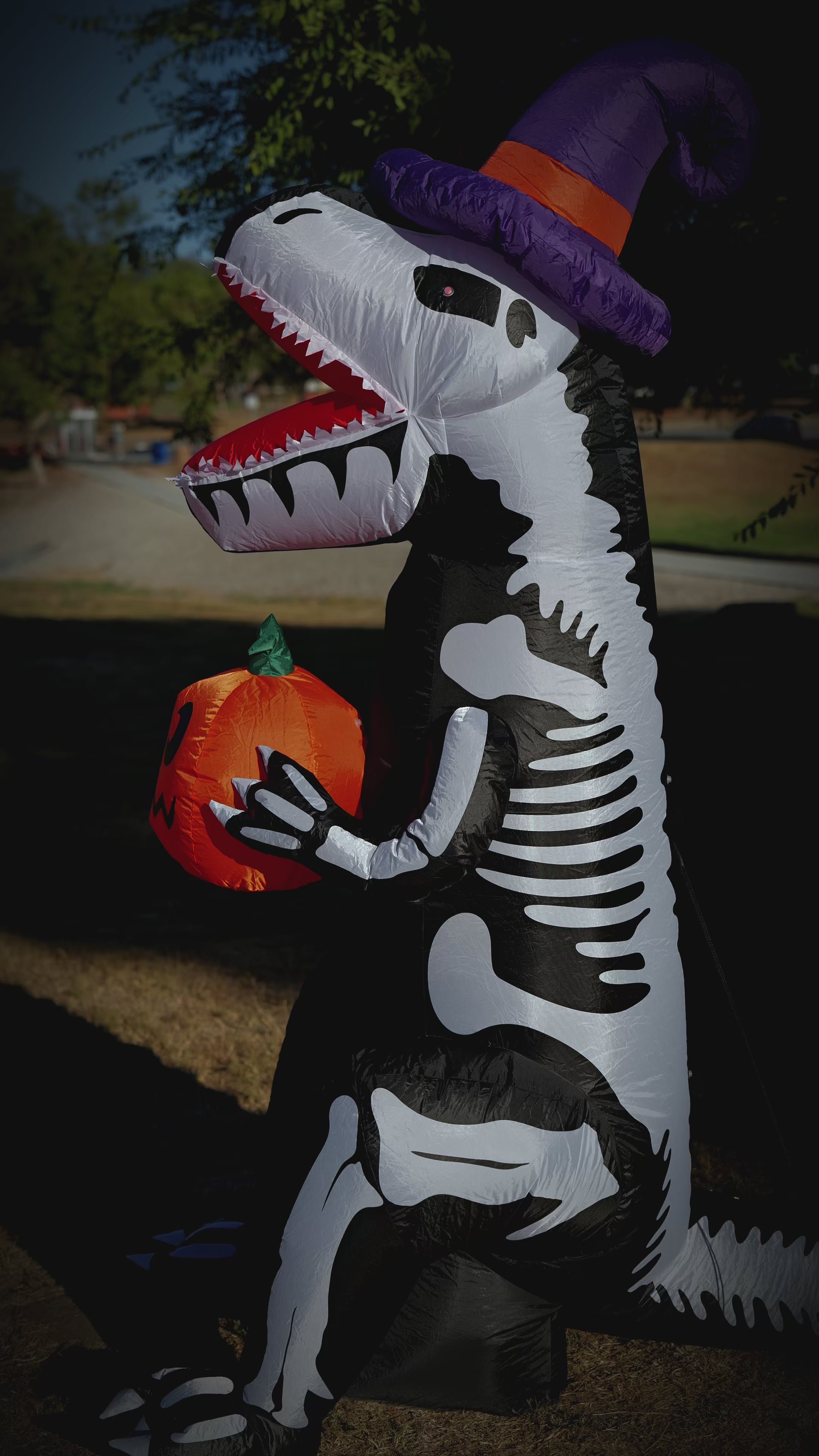- DURABLE & WEATHER-RESISTANT: This dinosaur with pumpkin Halloween decorations is crafted from waterproof polyester for outdoor use. Reinforced stitching ensures durability in wind or rain, keeping its vibrant colors intact. Perfect for your Pascua decoración decorations, bringing festive joy all season long.